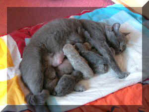 Op zondag 22 januari is Bijou begonnen met bevallen, na een onrustige niet opschietende nacht zijn we op 23 januari naar de dierenarts gegaan. Na overleg met hun hebben wij besloten voor een keizersnede. Miranda is bij Bijou gebleven in de operatiekamer waar ze onder plaatselijke verdoving de gehele operatie kranig en superlief onderging. Wilco heeft samen met de dierenarts assistente de kittens opgevangen en drooggewreven. Bijou is moeder geworden van 6 kittens, 4 katers (3 katers, optie) en 2 poezen (allebei optie). Met Bijou en de kids gaat het allemaal goed, de kleintjes drinken gulzig bij moeders.