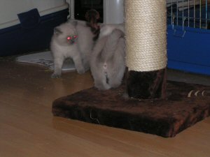 Samen met papa, Chocci en Cold op de krabpaal