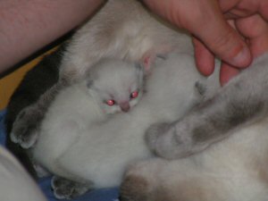 Kitten 1 vlak na de geboorte (linker foto) en een paar uurtjes oud (rechter foto)